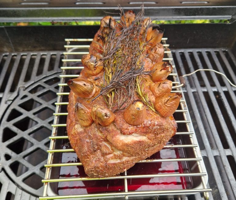 Saftig, rauchig und von einem Hauch Rotwein veredelt – dieser Schweinebraten vom Grill verbindet bayerische Herzhaftigkeit mit moderner BBQ-Küche. Die Rotweinmarinade sorgt für tiefes Aroma und hält das Fleisch wunderbar zart, während die Glut eine goldbraune Kruste und feine Rauchnoten zaubert.